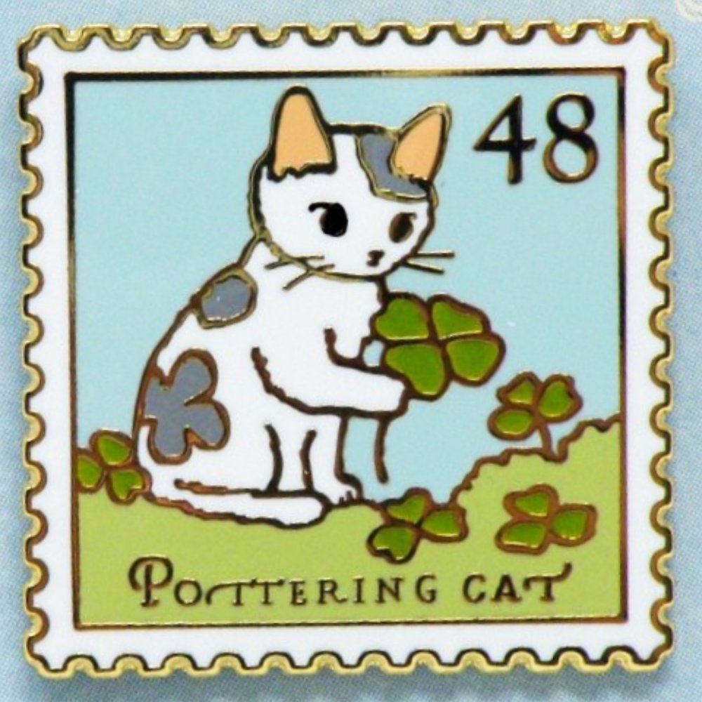 ポタリングキャット ピンズ 四葉のクローバー ピンバッジ ピンブローチ グッズ 猫雑貨 ギフト かわいい ぶち猫 切手デザイン