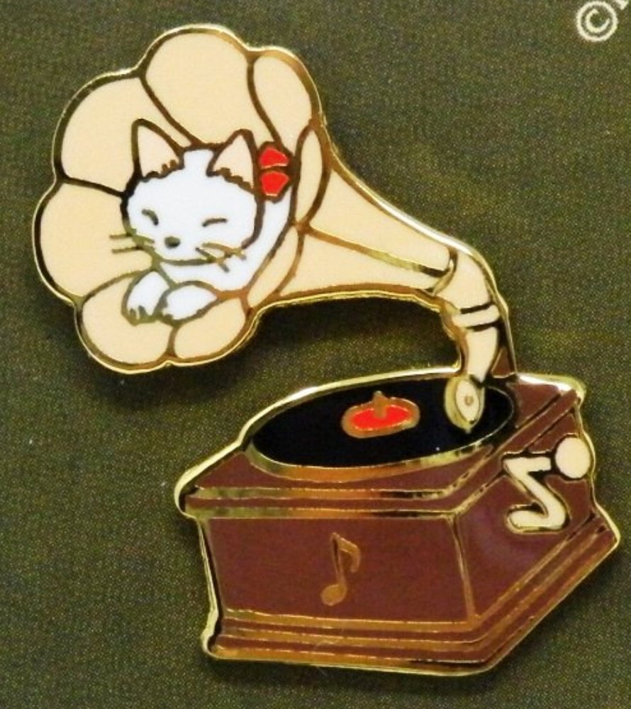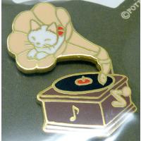 ポタリングキャット ピンズ 蓄音機 ピンバッジ ピンブローチ グッズ 猫雑貨 ギフト かわいい 白猫 昭和レトロ