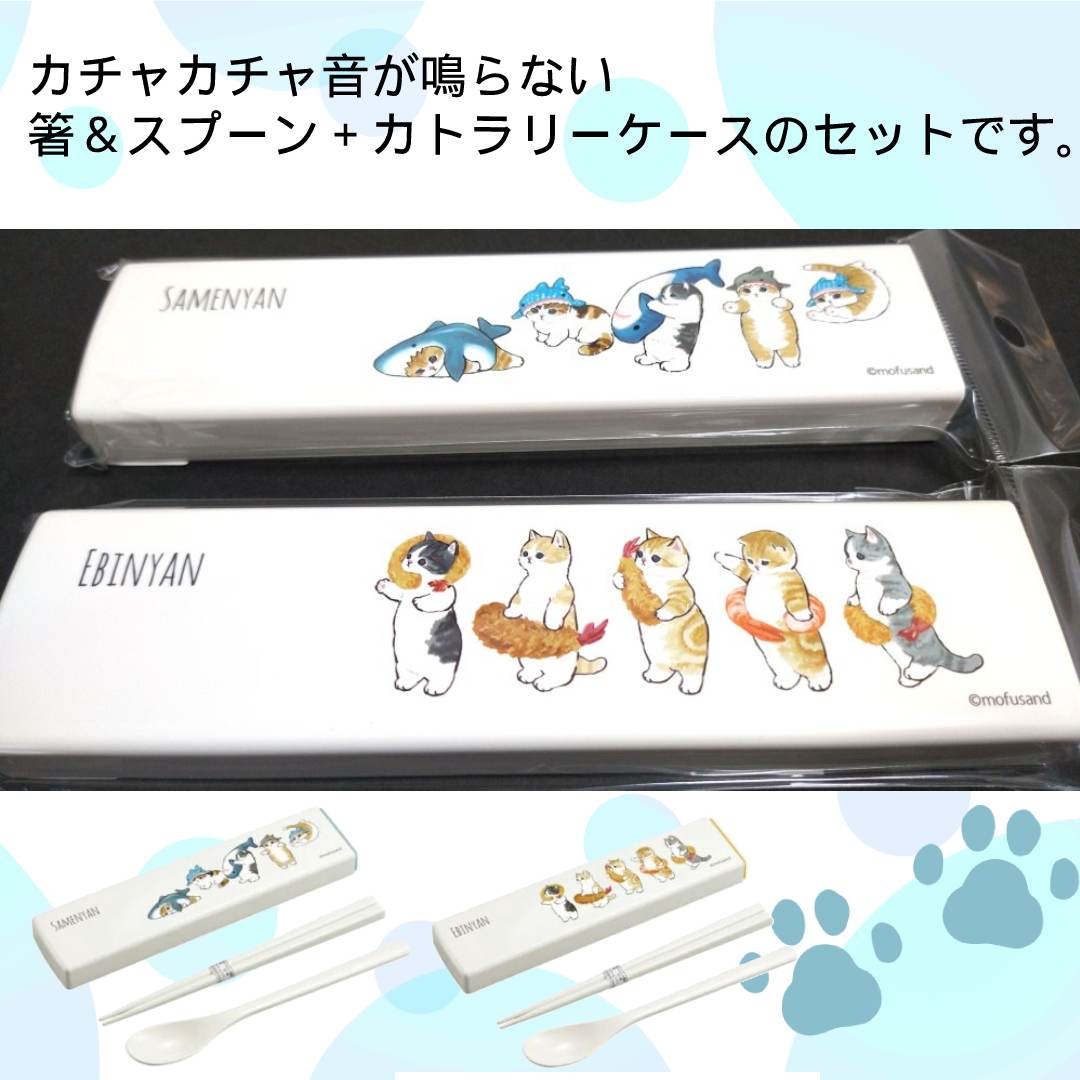 mofusand 箸&スプーン+カトラリーケース 日本製 カチャカチャ音ならない 18cmのお箸&スプーンケースセット 猫 もふさんど