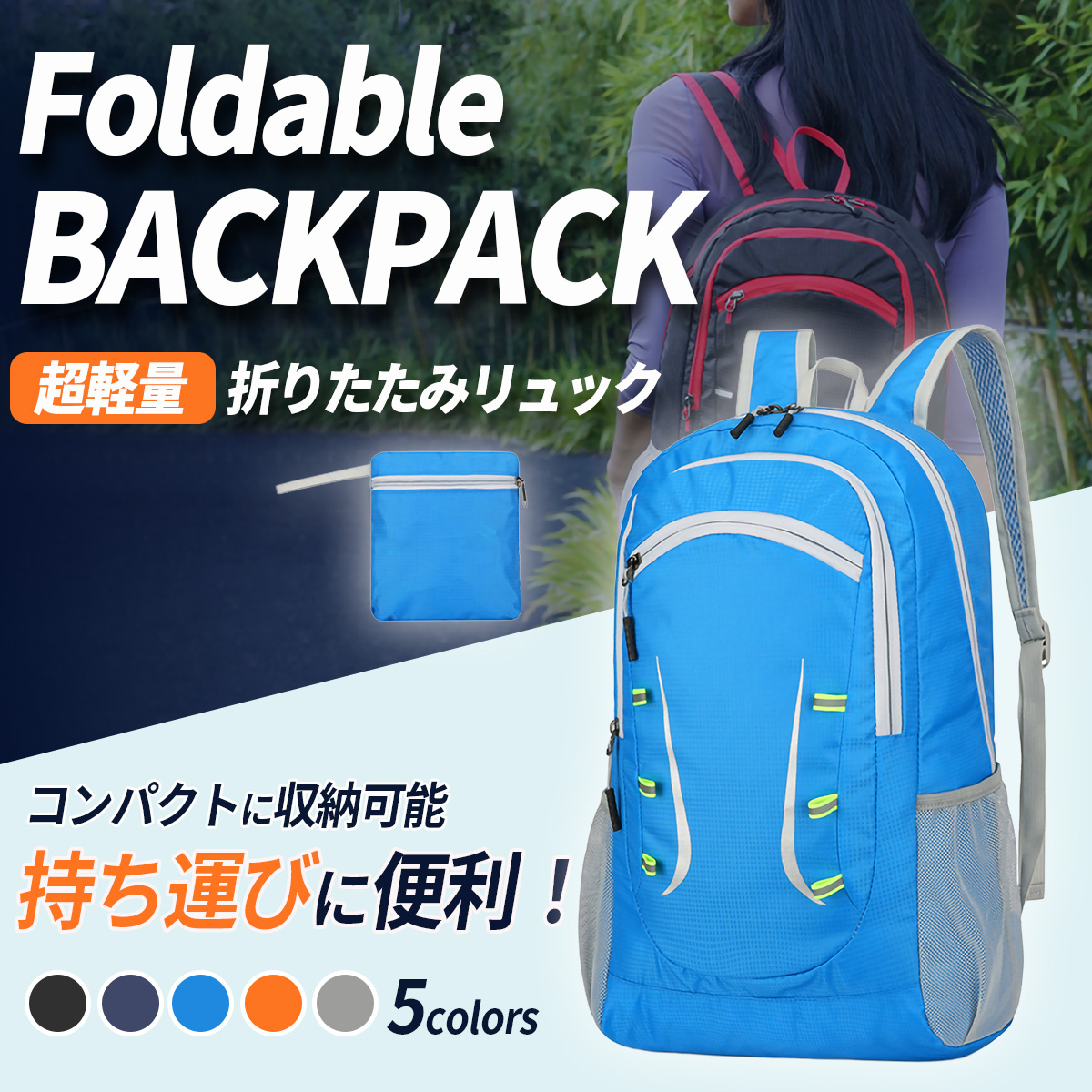 ・コンパクトサイズに折りたたみできるリュックサックです。