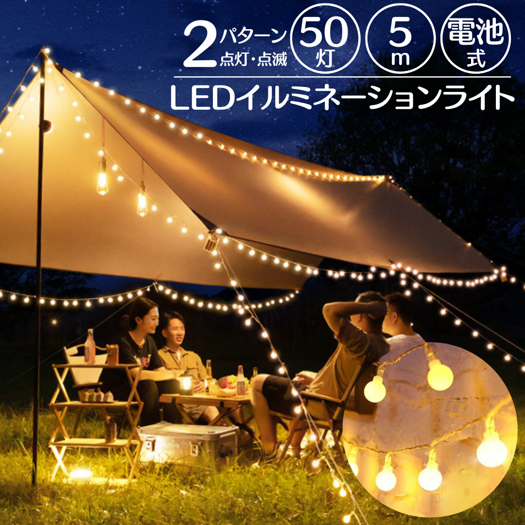 キャンプ ライト LED アウトドア テント タープ イルミネーション 飾り 野外 電池 防水 電飾 長い