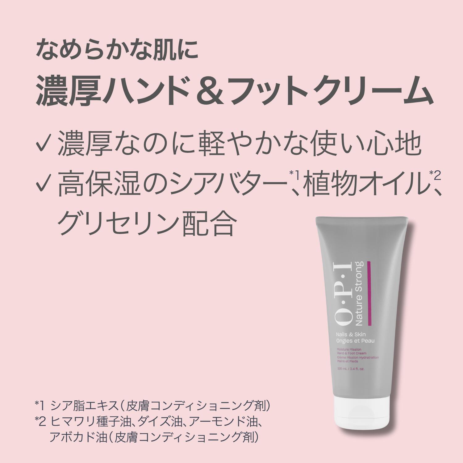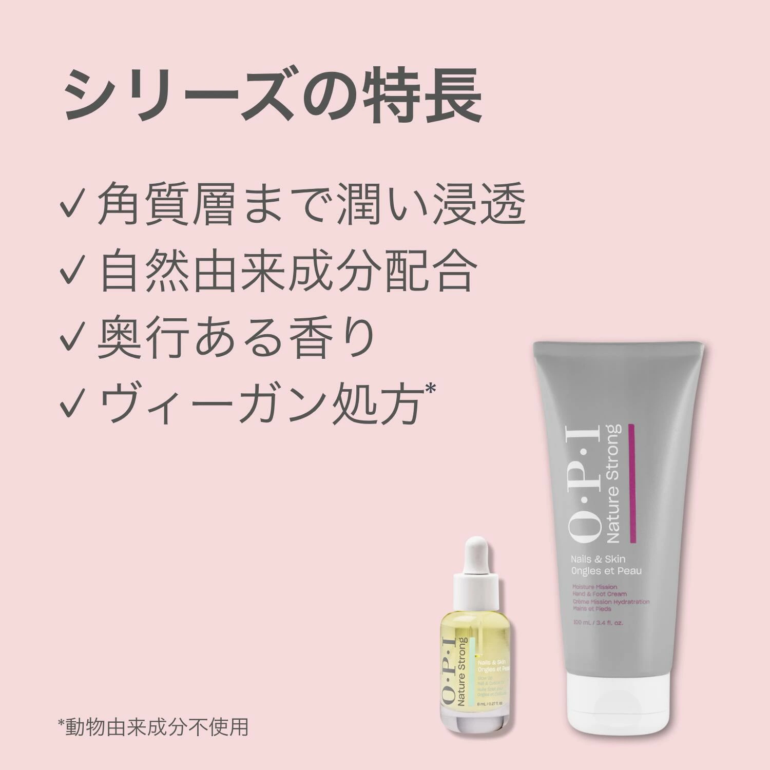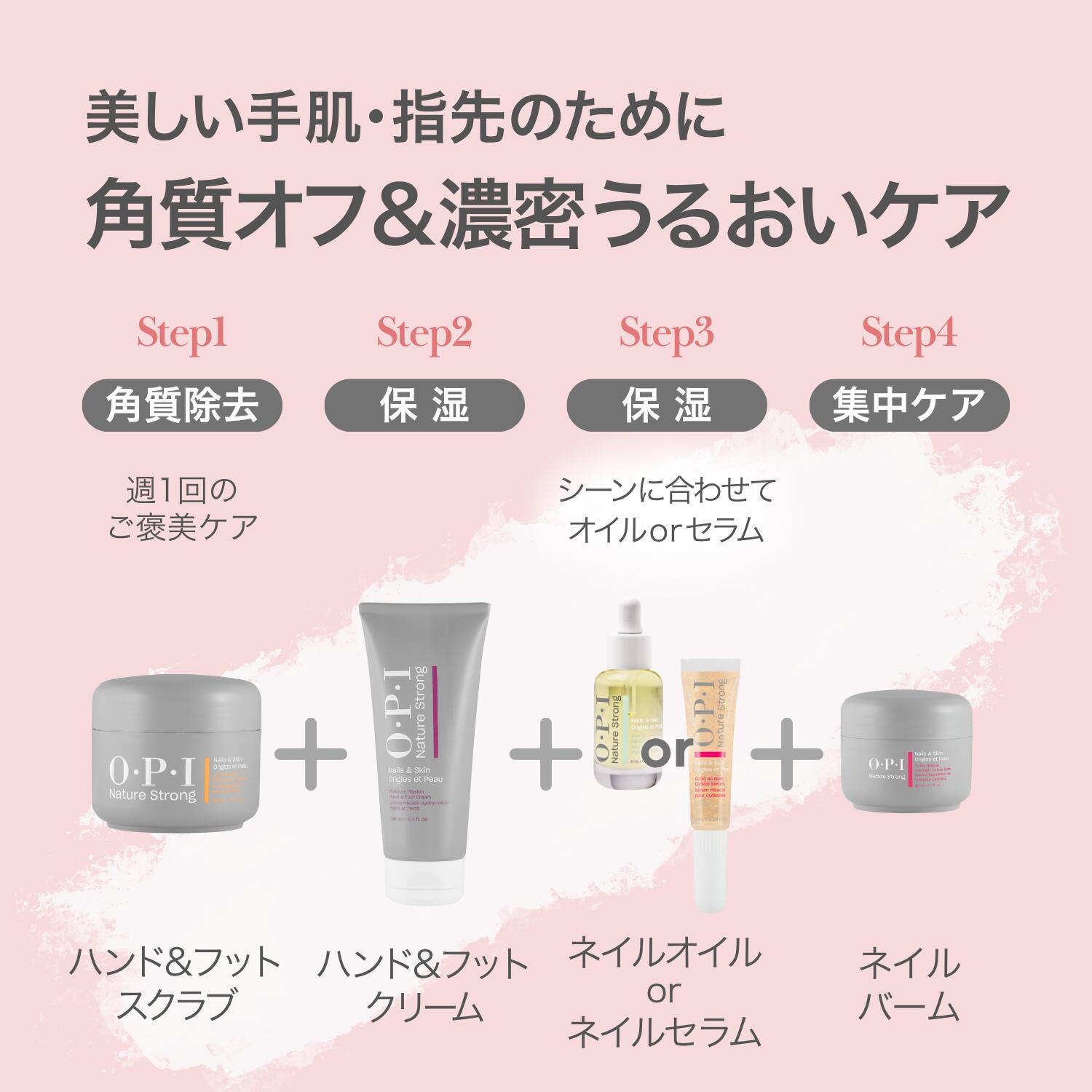 | 【商品名】 ネイチャーストロング ネイル&スキンケア シリーズ ネイルオイル、ハンド&フットクリーム 2点セット NSSC003 NSネイル&キューティクル オイル NSSC007 NSハンド&フット クリーム 【商品説明】 ネイルオイル、ハンド&フットクリーム 2点セット (1) ネイル&キューティクル オイル:うるおい守る、指先美人のネイルオイル ●角質層まで潤い浸透 さらっと軽い付け心地でべたつかないから、シーンを選ばず使えます。 ●肌にうれしい成分 ビタミンE(*1)と5種の植物オイル(*2)配合。自然由来成分 94%(*3)、ヴィーガン処方(*4) 。 *1 酢酸トコフェロール、トコフェロール、*2 マカデミア種子油、ヒマワリ種子油、バオバブ種子油、アルガニアスピノサ核油、ブドウ種子油、*3 自然由来指数94%(水を含まない)ISO 16128 準拠、*4 動物由来成分不使用 ●奥行きある香り体験 シトラスやフルーティなトップノートから始まり、ピオニーやリリーの華やかなミドルノートへ。ラストテストはアンバーやウッディ、ムスクがやわらかく残ります。調香師が設計した香りで、セルフケアをより心地よく楽しめます。MoodBloom Scent Technology(TM)採用。 ●少量で潤うのでコスパ◎* 適量を取り、爪とキューティクル周りにマッサージするように馴染ませます。のびがよく、スポイトタイプなら1〜2滴で5本の指に使用可能。目安使用回数(両手)は、NSSC003(8mL)で約57回分*。 *従来品のプロスパ ネイル&キューティクルオイルの約半分量で使用可能。標準的な目安使用量。個人差があります。 ●夜の集中ケア、ネイルスラッギング*にも 就寝前にネイルオイルの上からネイルバームをこっくり重ね、潤いを閉じ込めることで、翌朝しっとりした美しい指先に。 *爪や甘皮にオイルや美容液を塗り、その上からバームでフタをして潤いを閉じ込めるネイルケア方法。 (2) ハンド&フット クリーム:なめらかな肌に、濃厚ハンド&フットクリーム ●角質層まで潤い浸透 こっくり濃厚なのにべたつかないから、シーンを選ばず使えます。 ●高保湿成分配合 高保湿のシアバター(*1)、植物オイル(*2)、グリセリンと、シルクのようになめらかな肌に整えるエモリエント成分配合。自然由来成分97%(*3)、ヴィーガン処方(*4) 。 *1 シア脂エキス、*2 ヒマワリ種子油、ダイズ油、アーモンド油、アボカド油、*3 自然由来指数97%(水65%含む)ISO 16128 準拠、*4 動物由来成分不使用 ●奥行きある香り体験 シトラスやフルーティなトップノートから始まり、ピオニーやリリーの華やかなミドルノートへ。ラストテストはアンバーやウッディ、ムスクがやわらかく残ります。調香師が設計した香りで、セルフケアをより心地よく楽しめます。MoodBloom Scent Technology(TM)採用。 ●自宅でも外出先でも 持ち運びやすいチューブタイプ(100mL)と自宅でたっぷり使えるポンプタイプ(250mL)の2サイズ展開。 【品番・内容量】 NSSC003 NSネイル&キューティクル オイル 8mL (スポイトタイプ) NSSC007 NSハンド&フット クリーム 100mL (チューブタイプ) 【原産国】 NSSC003 NSネイル&キューティクル オイル:ポーランド NSSC007 NSハンド&フット クリーム:イタリア 【使用方法】 NSSC003 NSネイル&キューティクル オイル: 適量を取り、爪とキューティクル周りにマッサージするように馴染ませます。のびがよく、少量でしっかり潤います(スポイトタイプの場合、1、2滴で5指に使えます)。 夜の集中ケア、ネイルスラッギング*にも。 就寝前にネイルオイルの上からネイルバームをこっくり重ね、潤いを閉じ込めることで、翌朝しっとりした美しい指先に。 *爪や甘皮にオイルや美容液を塗り、その上からバームでフタをして潤いを閉じ込めるネイルケア方法。 NSSC007 NSハンド&フット クリーム: 適量を手に取り、手や足とキューティクル周りをマッサージするように馴染ませます。同シリーズのスクラブ(週1程度)、ネイルオイル、ネイルセラム、ネイルバームと組み合わせると、さらに健やかで美しい手元・足元に。 【原材料・成分】 NSSC003 NSネイル&キューティクル オイル: マカデミア種子油、ヒマワリ種子油、香料、バオバブ種子油、アルガニアスピノサ核油、ブドウ種子油、酢酸エチル、ベンゾトリアゾリルドデシルp−クレゾール、酢酸トコフェロール、アサイヤシ果実油、トコフェロール、ジメチルオキソベンゾジオキサシラン NSSC007 NSハンド&フット クリーム: 水、シア脂エキス、ベヘニルアルコール、グリセリン、ヒマワリ種子油、クエン酸ステアリン酸グリセリル、オクチルドデカノール、ダイズ油、アーモンド油、ステアリン酸ポリグリセリル−3、香料、アボカド油、フェニルプロパノール、プロパンジオール、カプリリルグリコール、カルボマー、酢酸トコフェロール、キサンタンガム、水酸化Na、グルタミン酸ジ酢酸4Na、アルガニアスピノサ核油、トコフェロール、黄4 【使用上の注意】 ●爪やお肌に異常が生じていないかよく注意すること。傷、湿疹等のある時は使わないこと。 ●使用中や使用後日光にあたって、赤み、はれ、かゆみ、刺激