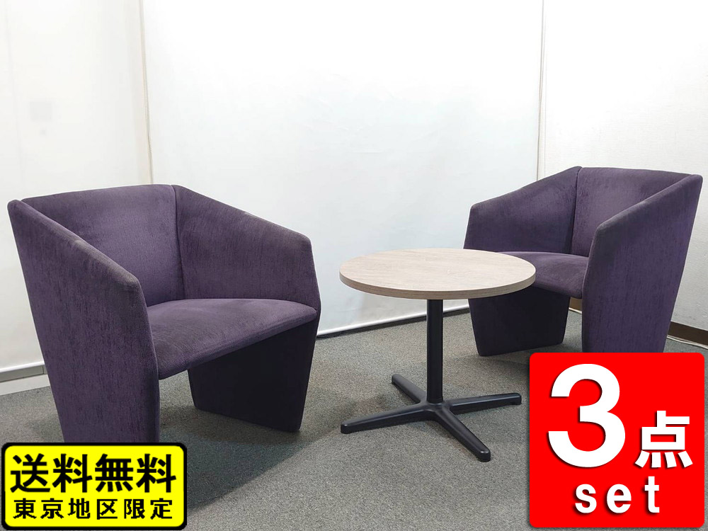 (COR コア社 ドイツ 1人掛けソファ×2点 イトーキ ローテーブル TLLP-06CJT-21×1点)