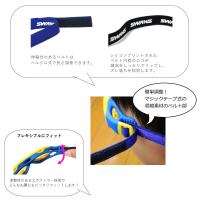 収縮性のあるベロクロ式ヘッドバンドに施された滑り止めのSWANSロゴプリントが激しい動きでもがっちりホールド
