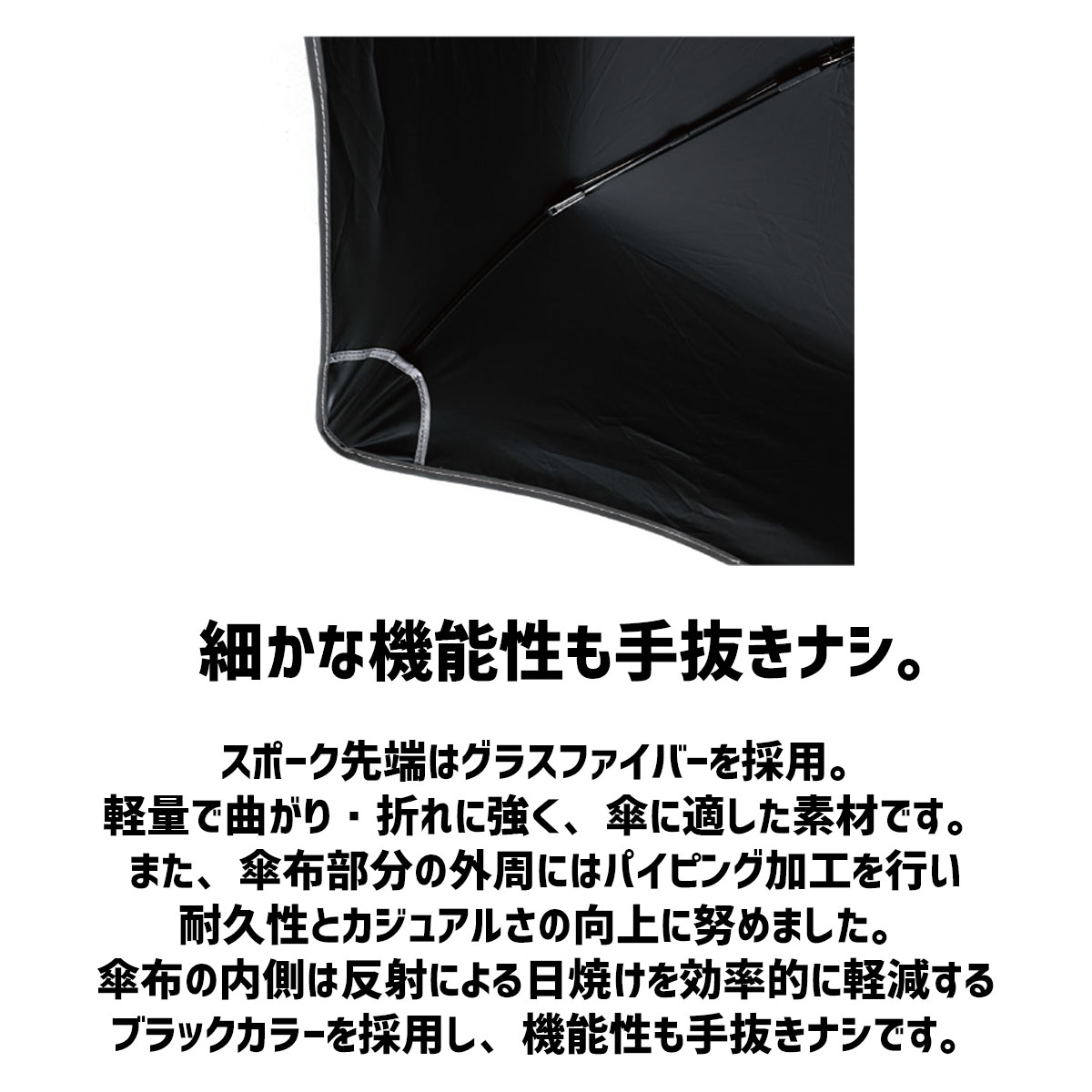 傘布内側には紫外線吸収効果の高い黒布をチョイスし、真夏の強烈な日差しの中でも紫外線・厚さからしっかりガードしてくれます。