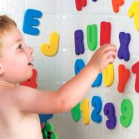 お風呂の壁にぺったんこ♪ビタミンカラーのアルファベットと数字の36コセットでバスタイムを楽しいお勉強タイムに!