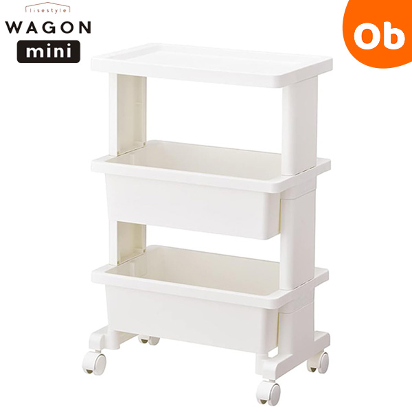 リビング・キッチン・ランドリーなど様々なシーンで多用途に使えるキャスター付きワゴン。天板+本体2段のテーブルワゴン3段のミニサイズです。