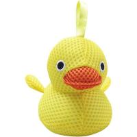 あひるをギュっと詰めてみました、遊んで洗えるバスセットとなります。小物入れにもなるバスタブにあひるの小さなフィギュアが5個とぬいぐるみ1個入っています。黄色あひるが4羽、黒色あひるが1羽。 お風呂に浮かべて遊びましょう。