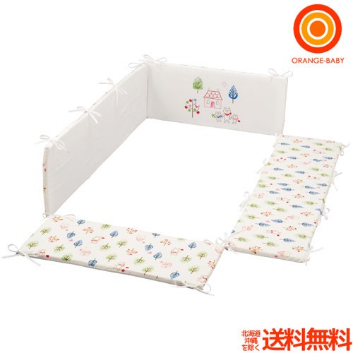 ミニベッドガードパット フォレストフレンズ オフホワイト フジキ ベビーベッド用 日本製 【送料無料 沖縄・一部地域を除く】