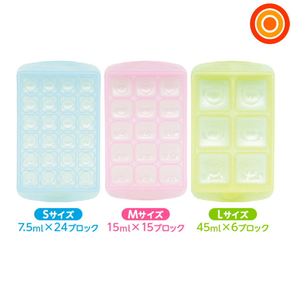 使う分だけ簡単に取り出せる!軽く押してポン!と1つずつ取り出せる。・離乳食づくりにとっても便利!・食材の小分けやソースなどもOK!・たくさん作って冷凍保存!■サイズ:Sサイズ/24ブロック 7.5ml(1ブロック)Mサイズ/15ブロック 15ml(1ブロック)Lサイズ/6ブロック 45ml(1ブロック)■備考:素材・成分:ポリエチレン耐熱温度:70度×電子レンジ×食器洗浄機・乾燥機×煮沸消毒○薬液消毒【ケイジェイシー】