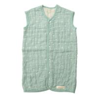 股下にある2箇所のスナップボタンを留めるとズボンのようになり、裾のめくれ上がりをガード!夜な夜な目をこすりながら子供の寝ている場所を探し、お布団を掛けなおす心配はありません。サッと着させたい時は股下ボタンを外してベストのように着ることもできます。また、成長して股下ボタンが留められなくなってもベストタイプとして長く着ることができます。※ボタンを付け外しする際は、生地を引っ張らずボタンだけを持ち付け外しを行ってください。