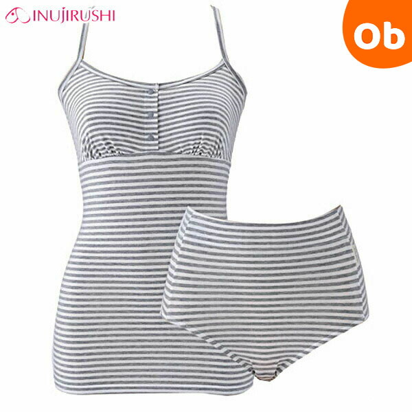 犬印 産後ママのための授乳キャミセット(杢ボーダー) TS-3172S M・L グレー