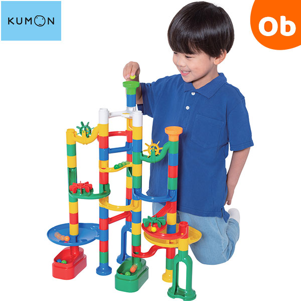 ボールが下まで落ちるようにコースを考えて作る遊びをとおして、作り上げる達成感を味わい、集中力や創造性を育てます。