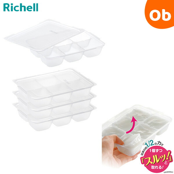 小分け冷凍保存で時短テク、らくらく離乳食調理離乳食を小分け冷凍保存する容器です。1個ずつ取り出せるので、作り置きに便利です。お弁当の作り置きとしても使用できます。●取り出しやすい1個ずつ取り出せるので、毎日の食卓や、離乳食・お弁当の作り置きに便利です。●別サイズでも積み重ねOK薄型なので、冷凍庫内でもスッキリ保存できます。●フタ付き引き出しタイプの冷凍庫でも、離乳食がこぼれません。■サイズ:1セット:12.7×17.5×3.4H(cm)■備考:容量:50mL×6ブロック材質:ポリプロピレン電子レンジ解凍OK食器洗い乾燥機OK煮沸・薬液・電子レンジ消毒OK4セット入【リッチェル】