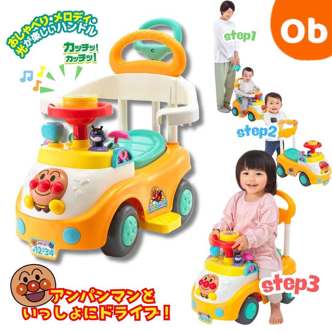 アンパンマンといっしょにドライブ! 3STEP【送料無料 沖縄・一部地域を除く】よくばりビジーカー 押し棒+ガード付き