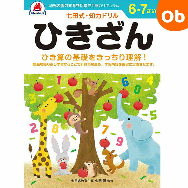 七田式・知力ドリルの特長:右脳と左脳をバランス良く使える子に!言葉で理解し、論理的に思考する左脳の能力に対して右脳は直感的でイメージを媒介とし、想像力・記憶・音楽・語学などで優秀な働きをします。両方の脳を使う事で、無限の可能性を引き出す事が出来ます。「6,7歳 ひきざん」では,類似問題を繰り返し解き、基礎力を固め、数に苦手意識を持たせない事が大切です。段階を追った問題、繰り返し学習とイメージ学習で計算力・思考力をつけます。[家庭学習のポイント]子どもにとって大事な「今」という時間。親として何をしてあげられるのか。良い学校や良い塾を選ぶ事よりも、家庭での学習を充実させることが、学校や塾での学習効果を上げることがわかっています。自分で考え、判断し、表現する力を育みましょう。・48ページ(問題ページのみ)全ページカラー■サイズ:B5判【シルバーバック】