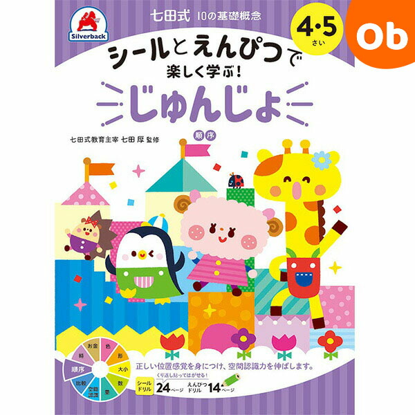七田式教育主宰 七田厚 監修えんぴつと大好きなシールで基礎づくり。くり返し貼ってはがせる!〜から何番目や、位置関係を学びます。最終的に、マス目の座標の中での位置がわかるように導きます。正しい位置表現を身につけ、 理路整然とした説明ができる子になります。「幼児の基礎概念」は学習の土台。高い学力は、基礎概念の上にくみたてられます。「色」「形」「大小」「数」「量」「空間認識」「比較」「順序」「時」「お金」の10の基礎概念。学習の土台であるこの基礎概念をきちんと築くことで、大きな知恵や知識の組み立てが可能となります。就学前に学習の土台を築きます。幼児と呼ばれるお子さまをお持ちのお母さんのお悩みといえば、 大切なお子さまについてですよね。幼児期に、子どもの考える力の土台を固めることは、非常に重要です。この土台がきちんと築かれてはじめて、 大きな知恵や知識の組み立てが可能となっていきます。「幼児の10の基礎概念」は、お子さんに苦手意識を与えないように、楽しく教えていくことがポイントです。42ページ■サイズ:A5判【シルバーバック】