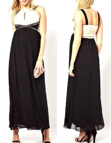 マタニティウエア エイソス asos Little Mistressマキシドレス ラインストーン付きロングワンピース