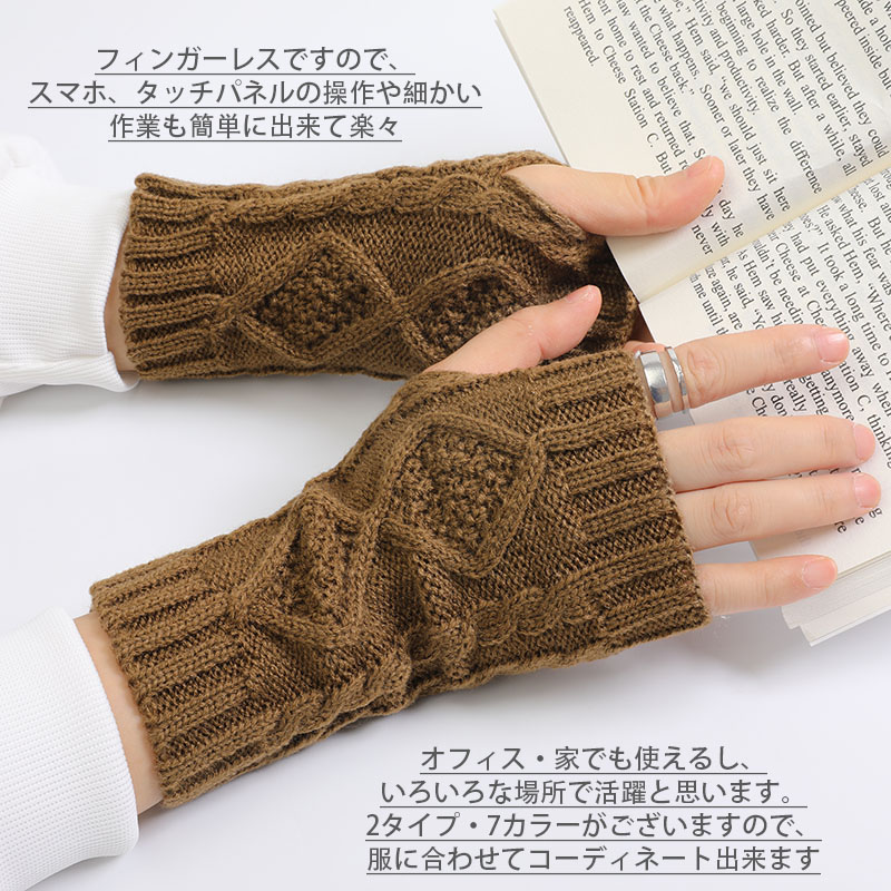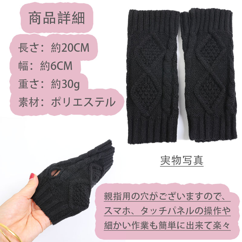 アームウォーマー レディース 手袋 ハンドウォーマー 防寒 暖かい 指なし スマホ対応手袋 伸縮性抜群のニット手袋 タッチパネル対応手袋