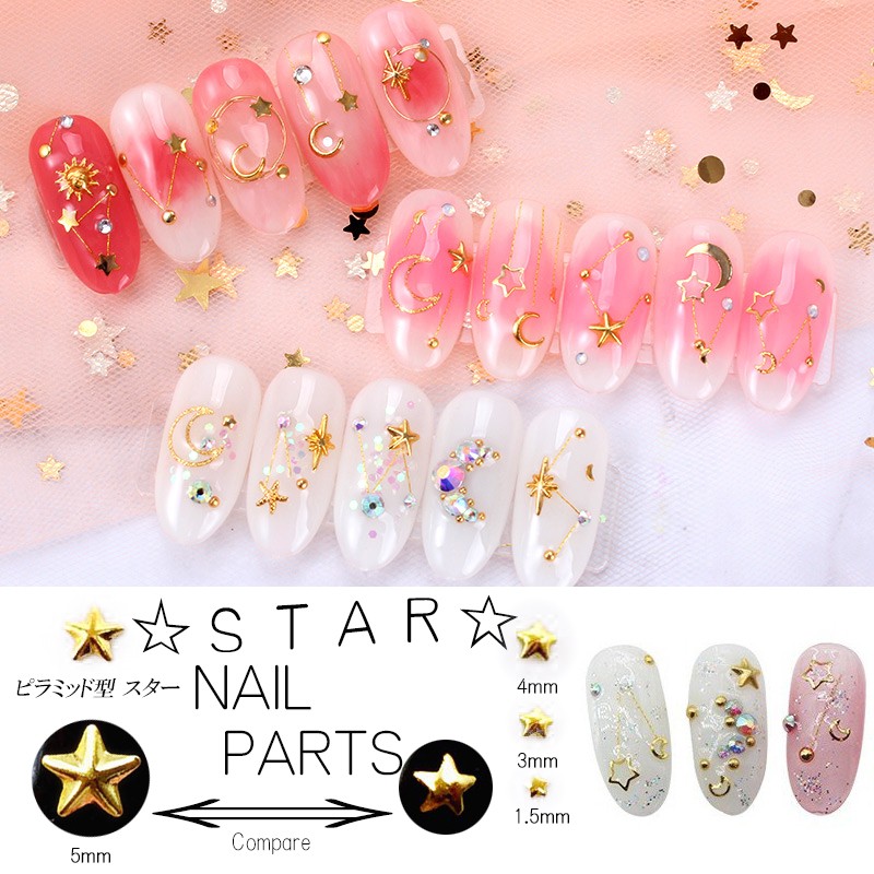 20個入りメタルパーツ スター 星 スタッズ ゴールド ピラミッド 立体 ネイルパーツ スタッズ ネイル用品 GOLD スター アート パーツ デコ素材