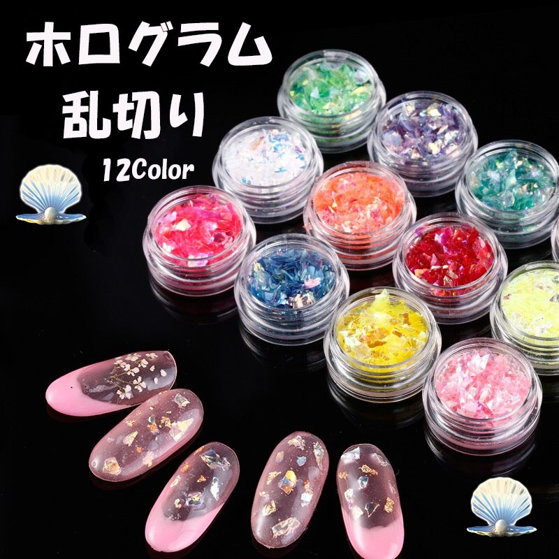 ネイルアート ホログラム 乱切り 容器 入り オーロラカラー 12カラー ホイル セルフネイル ジェルネイル