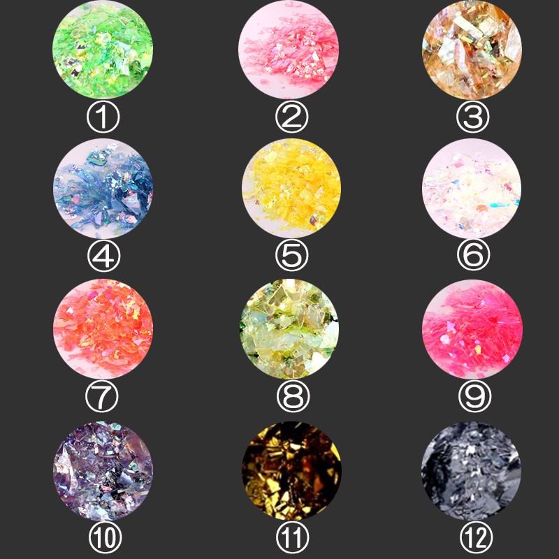 お得な12色セットで、ジェルやトップコートに埋め込んでも綺麗な光沢があります。
