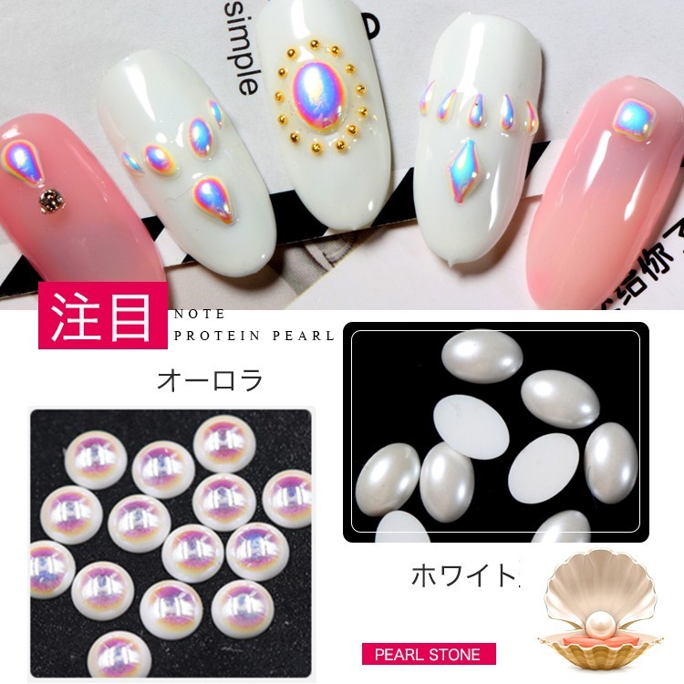 ネイルパーツ 20個入り 高級 半球型 パール オーロラ ホワイト 輝き セルフネイル ジェルネイル