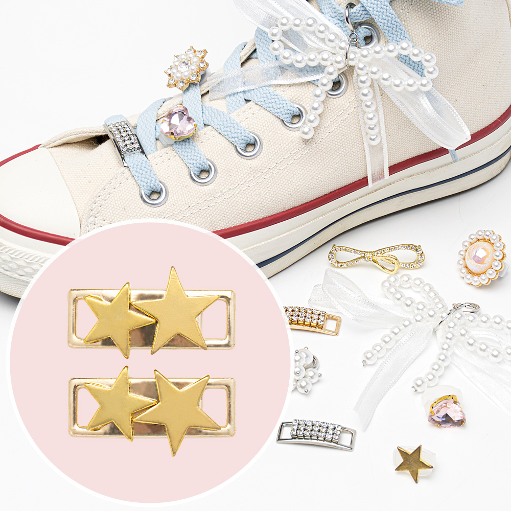 シューズアクセサリー/スニーカーアクセサリー/スニーカーデコレーション/スニーカーチャーム/シューピアス/シューパーツ/飾り/ラインストーン/パール/ビジュー/リボン/スター/星/キラキラ/おしゃれ/かわいい/プレート/クリップ/ハート
