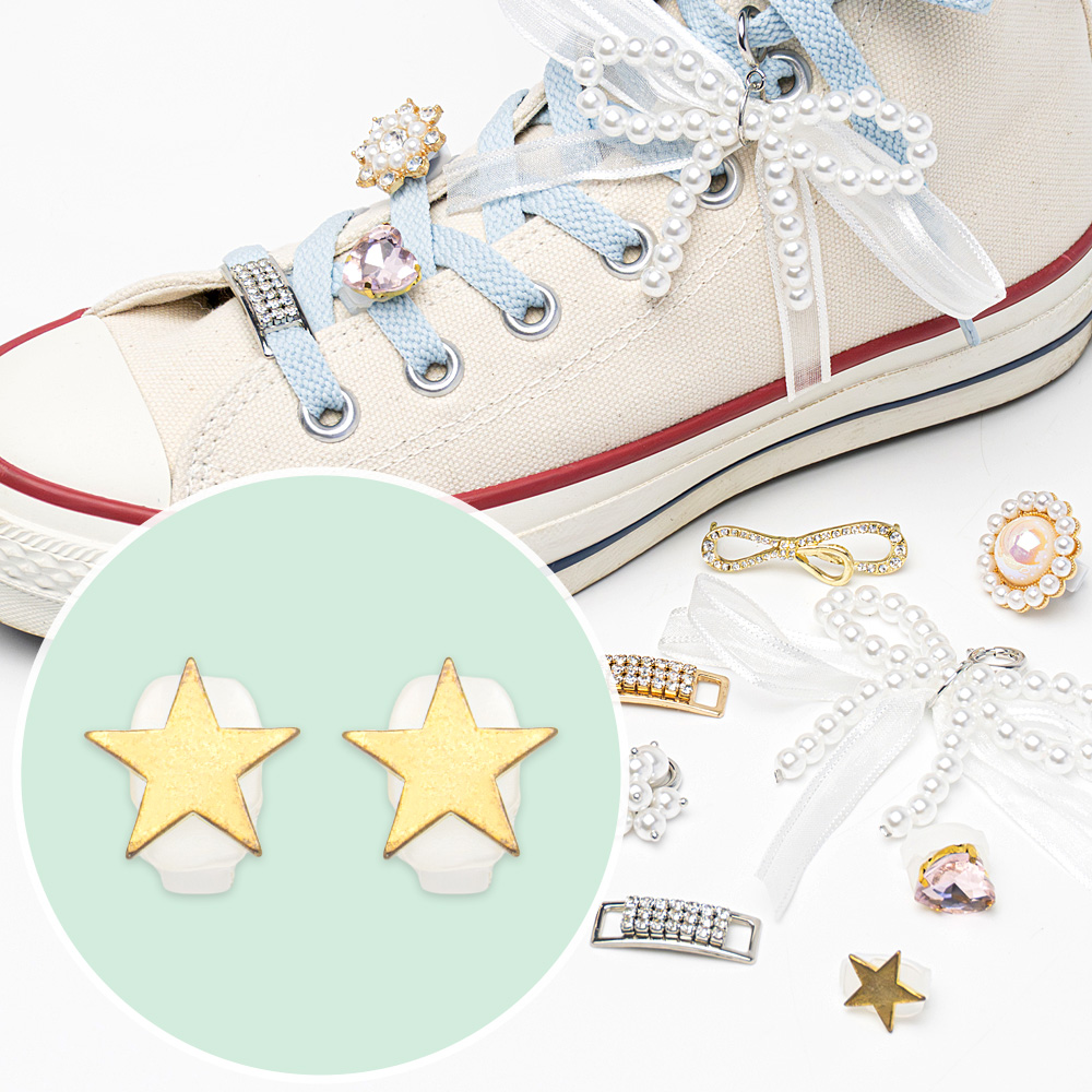 シューズアクセサリー/スニーカーアクセサリー/スニーカーデコレーション/スニーカーチャーム/シューピアス/シューパーツ/飾り/ラインストーン/パール/ビジュー/リボン/スター/星/キラキラ/おしゃれ/かわいい/プレート/クリップ/ハート