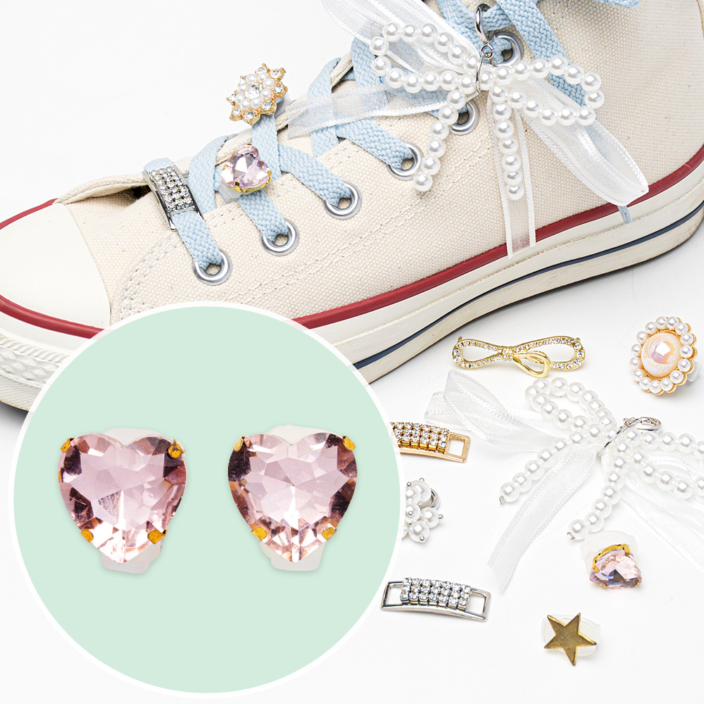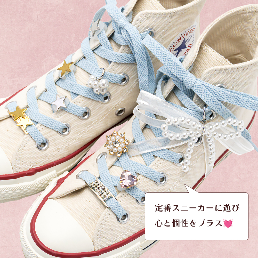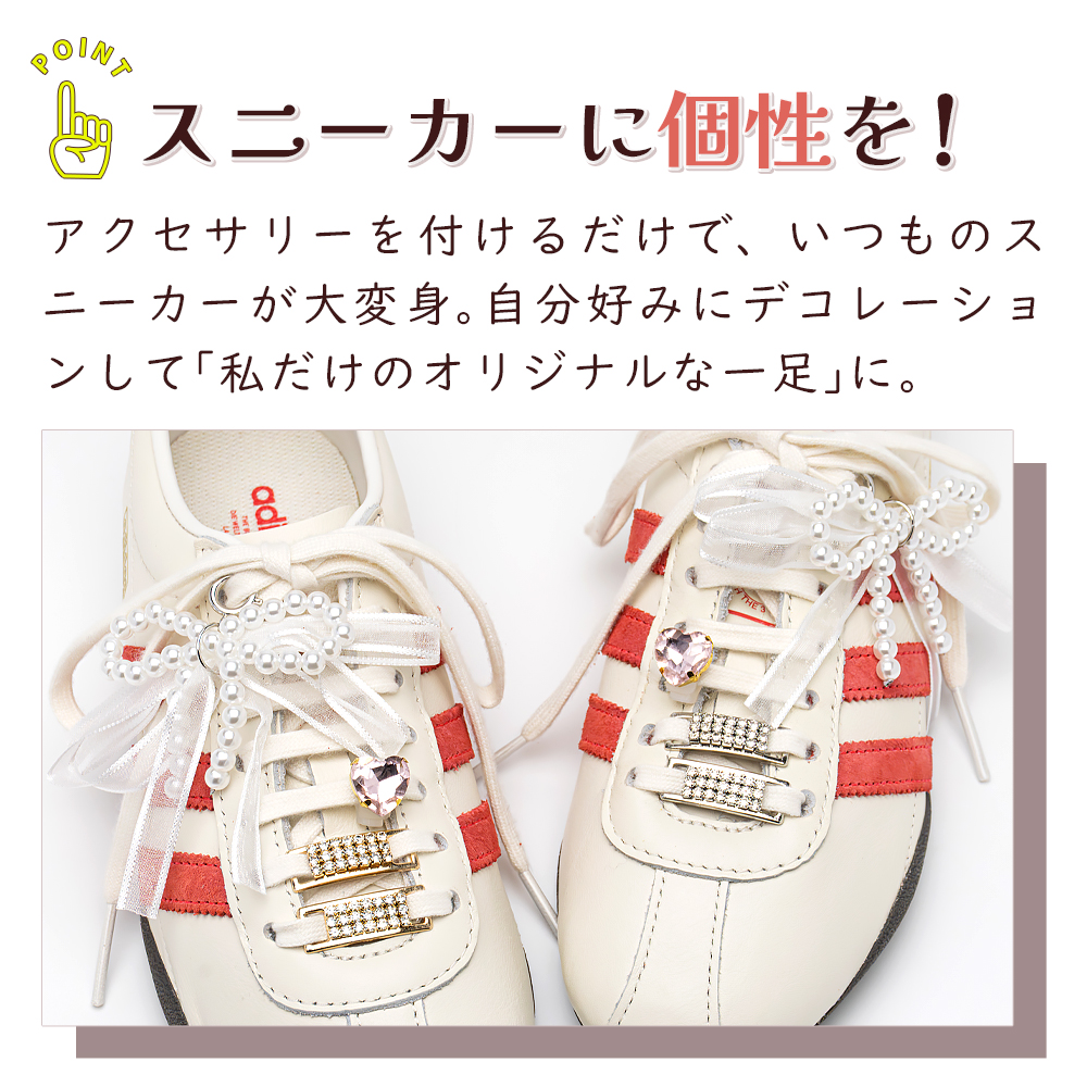 シューズアクセサリー/スニーカーアクセサリー/スニーカーデコレーション/スニーカーチャーム/シューピアス/シューパーツ/飾り/ラインストーン/パール/ビジュー/リボン/スター/星/キラキラ/おしゃれ/かわいい/プレート/クリップ/ハート