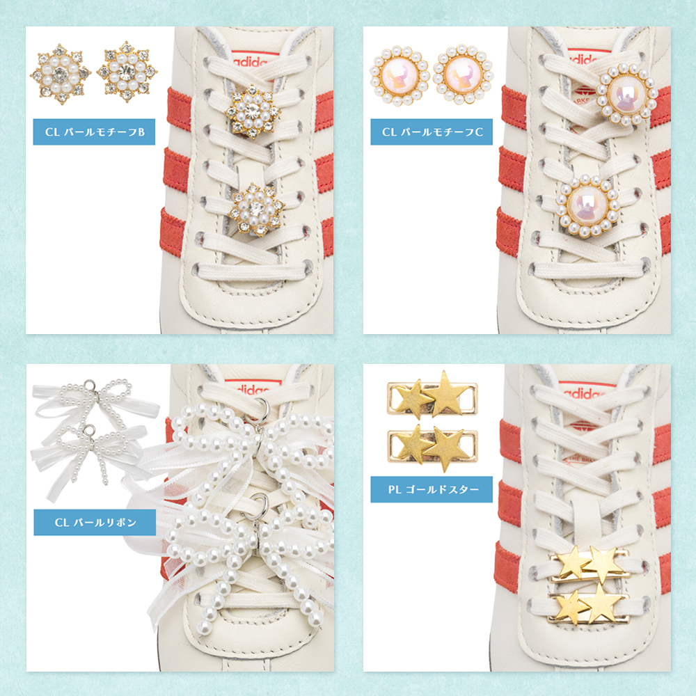 シューズアクセサリー JEWEL1923 スニーカーアクセサリー靴紐に取り付けるだけ!スニーカーデコレーションを気軽に楽しめるスニーカー用アクセサリー。いつものスニーカーをその日の気分で手軽にアレンジ。
