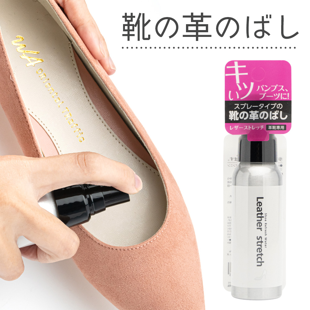 キツいパンプスやブーツに!靴の革を柔らかくし、歩きながら自然に伸ばすスプレータイプの靴の革のばしです。