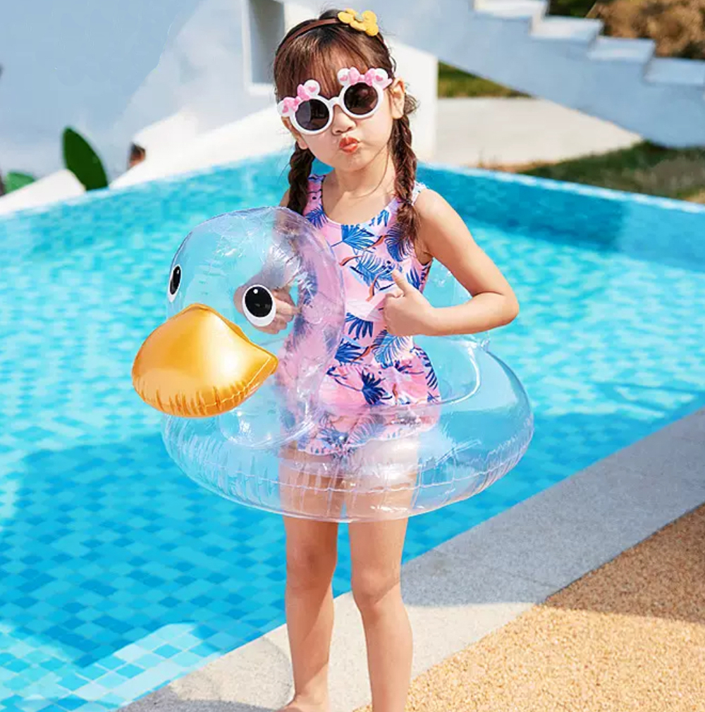 立体的なあひるのデザインがとってもかわいい!今流行りのクリアタイプでプールや海で映える事間違い無し!