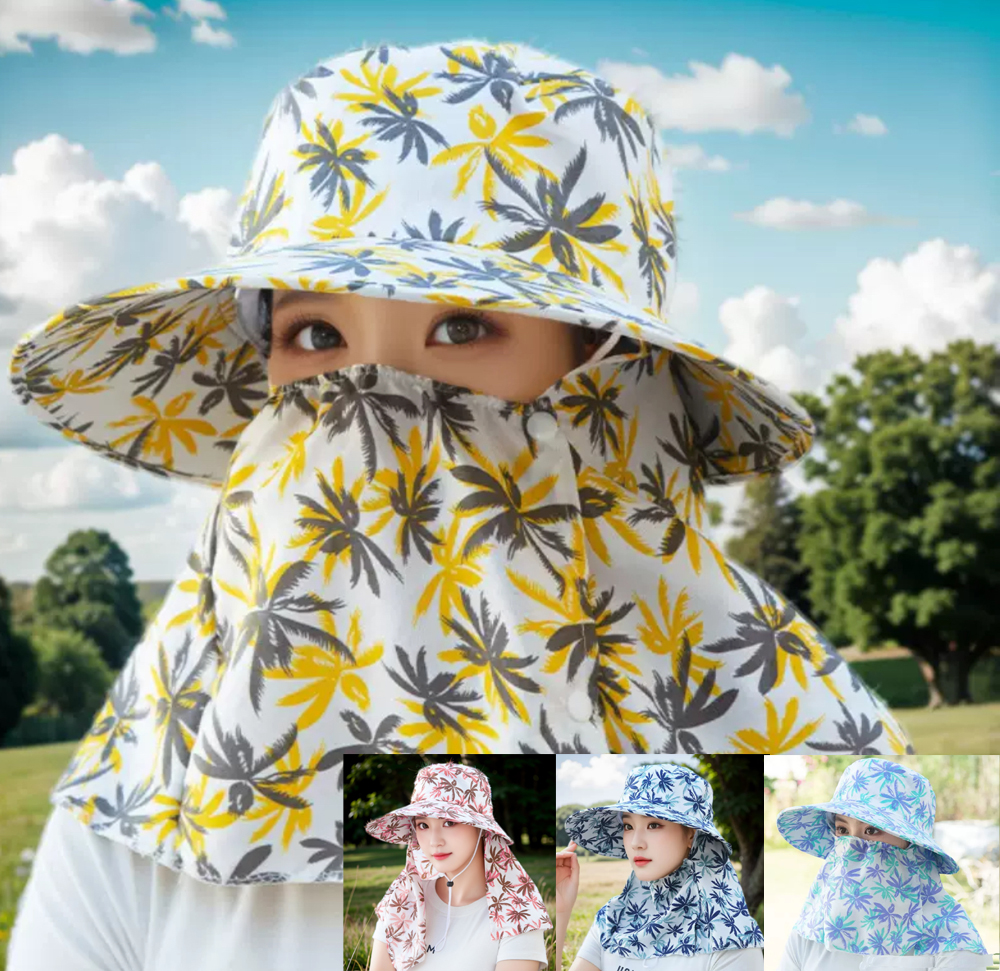 紫外線対策ハット 日除けハット 日よけ帽子 フェイスガード付き 首回りもガード レディース
