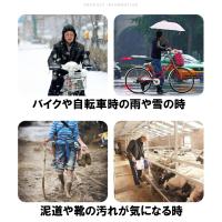 ※ビニール素材ですので、長時間歩くときなどの耐久性を持ち合わせておりませんので、特に自転車やバイクを運転時に活躍する商品です。また、マンホールやタイルなど、滑りやすい所は、気を付けて歩くようにしてください。本商品を使用しての補償は致しかねます。