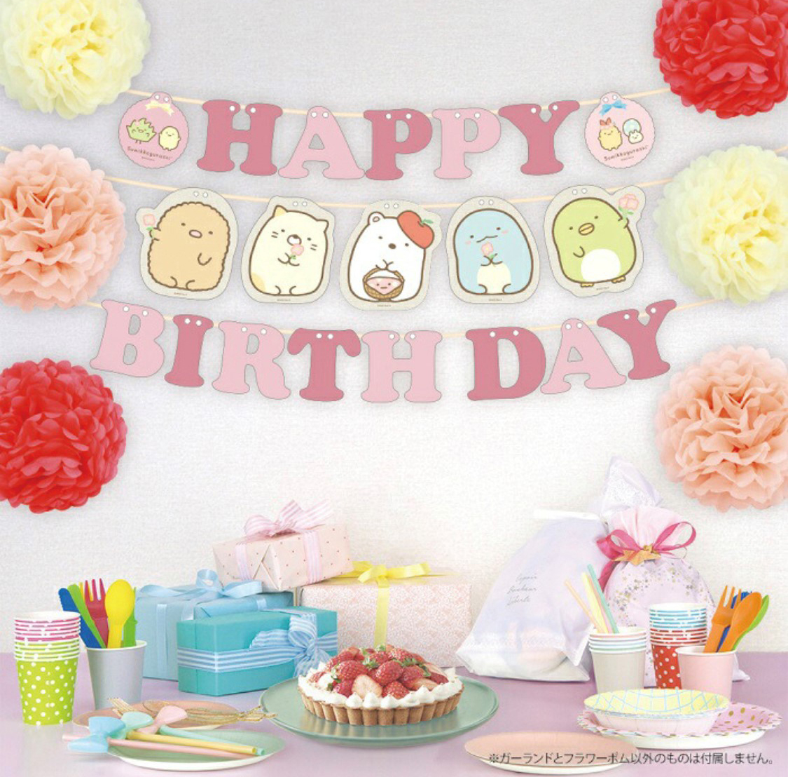 すみっコぐらし バースデーデコレーションセット フラワーポム 誕生日ガーランド パーティーグッズ すみっこぐらし