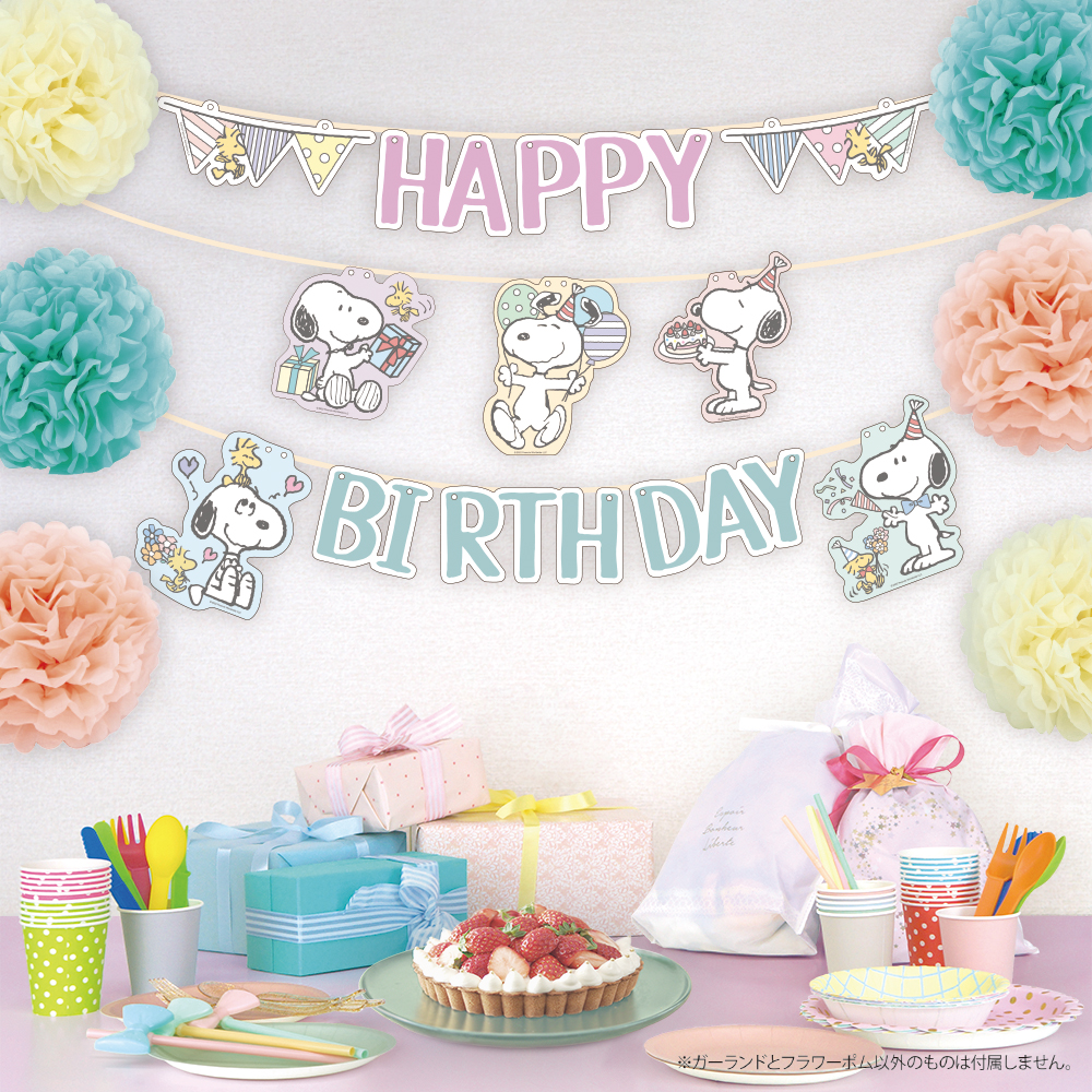 スヌーピー バースデーデコレーションセット フラワーポム 誕生日ガーランド パーティーグッズ