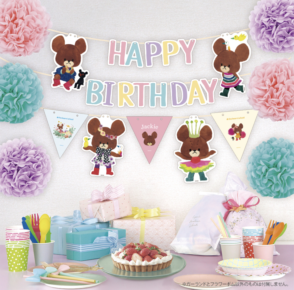 くまのがっこう バースデーデコレーションセット フラワーポム 誕生日ガーランド パーティーグッズ