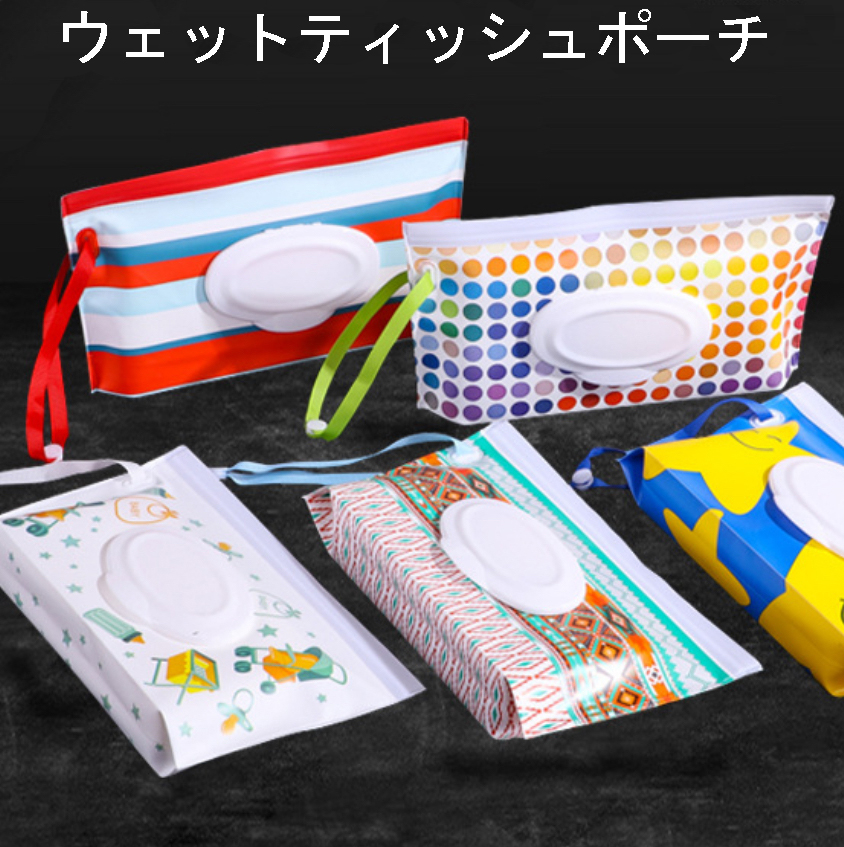 ウェットティッシュポーチ おしりふきポーチ フタ付きジッパーバッグ ループ付き おしり拭きポーチ