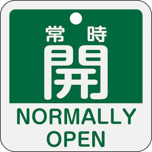 緑十字 ( 日本緑十字 ) バルブ開閉札 常時開(緑) 特15−403B 50×50mm 両面表示 アルミ製 ( 159132 )