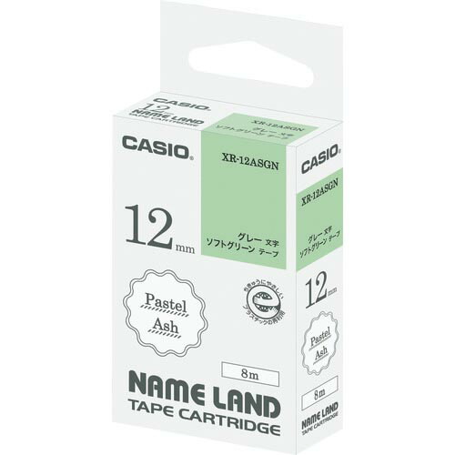 カシオ 【純正】 ネームランド用アッシュテープ、ソフトグリーンにグレー文字12mm ( XR-12ASGN ) カシオ計算機(株)
