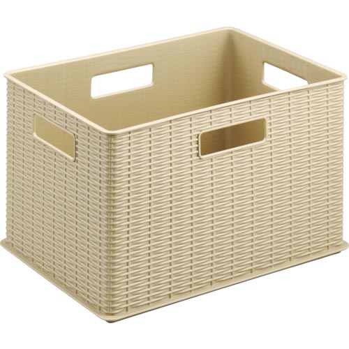 | 特長: | ラタン(籐)のバスケットを思わせるデザインで、オフィスや事務所などでの小物収納にぴったりです。 A4ファイルの収納が可能です。 一般的なカラーボックス(棚内寸:約390×275×275mm)にぴったり収まります。