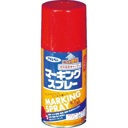 | 特長: | 細吹きスプレーなので、マーキングや文字書きがきれいにできます。 約5〜15cmの距離から吹きつけることができます。 アスファルトにマークしてもにじみません。 |