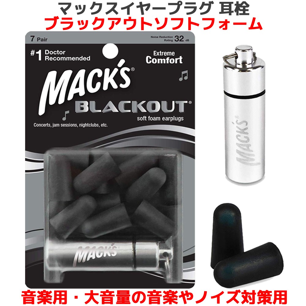 音楽専用 耳栓 マックス ブラックアウト ソフトフォーム 7ペア 14個入り マックスイヤープラグ マックスピロー Macks Pillow 大音量 音楽 音 ライブ コンサート クラブ ギグ 音楽祭 ハウリング ノイズ 防止 低減 聴覚 保護 守る 難聴 耳鳴り 騒音 耳せん 遮音