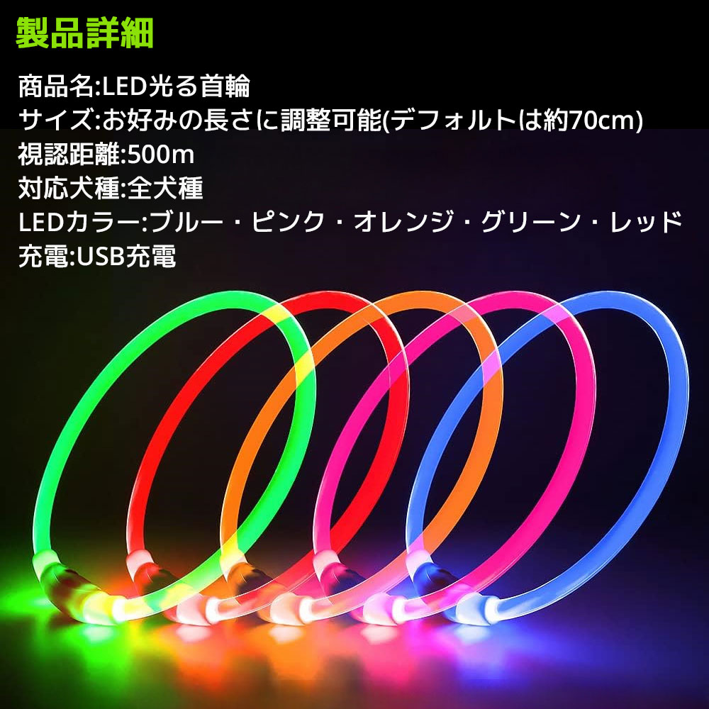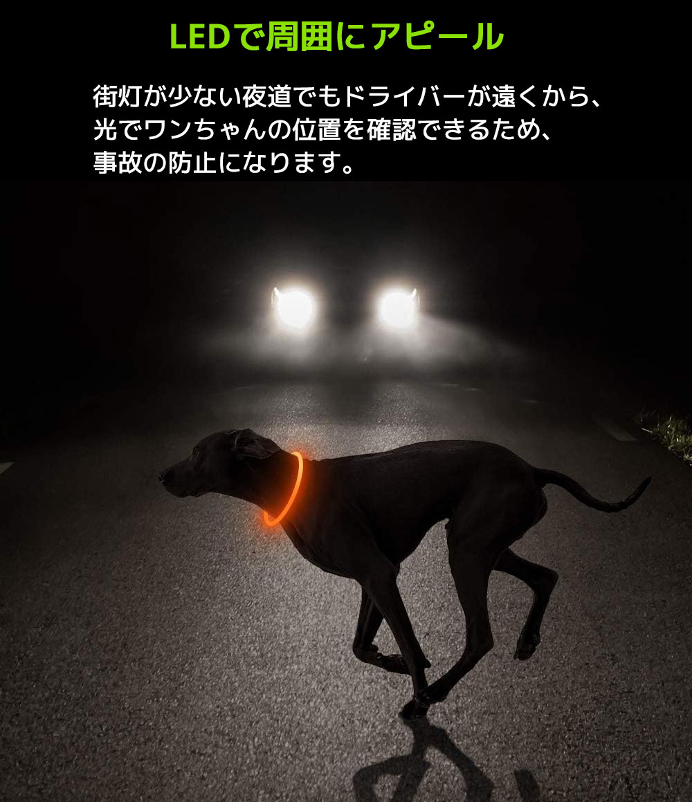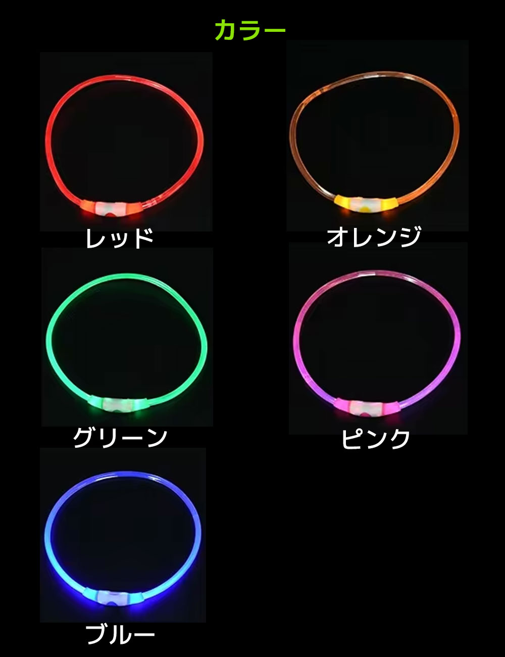 光るLED首輪 USB 充電式 防水 USB充電式 小型犬 中型犬 大型犬 サイズ調整可能 散歩 夜 ライト 事故防止 安全 おしゃれ 可愛い ペット用品 簡単脱着 安全対策