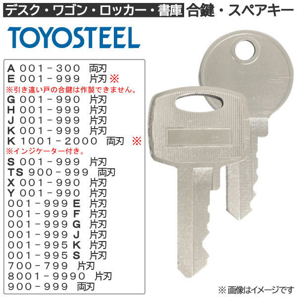 TOYOSTEEL(トヨスチール) 合鍵 スペアキー ロッカー・デスク・ワゴン・キャビネット・袖机・脇机・書庫・保管庫 用 / 鍵 カギ 合カギ 作製 作成