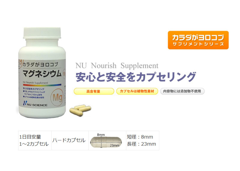 ニューサイエンス マグネシウム サプリ カプセル 60粒 オーガニック村 高濃度 クエン酸 効果 脂肪 サプリメント カラダがヨロコブ 酵素 活性化 健康 健康食品