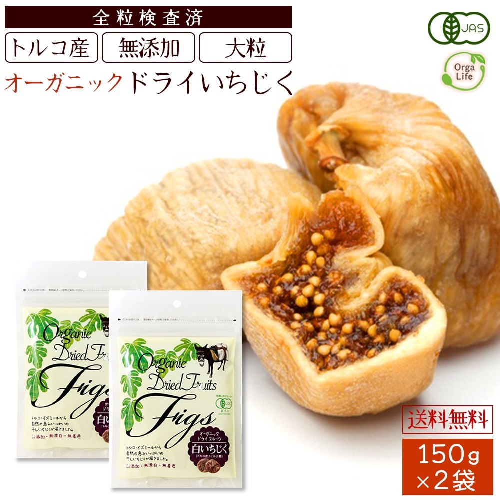 ドライいちじく 無添加 オーガニック 150g x 2袋 ドライフルーツ ドライフィグ イチジク 砂糖不使用 有機JAS トルコ産 栄養 大粒 肉厚 レシピ 作り方 送料無料