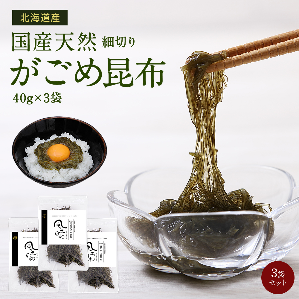 がごめ昆布 120g(40gx3袋) 天然 細切り 北海道道南黒口浜産 ガゴメ昆布 フコイダン 刻み 昆布 こんぶ コンブ きざみ 昆布 納豆 昆布