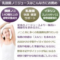 Angelbean 乳酸菌オーガニック・ノニジュースの特徴 ■タヒチ・マウピチ島産の長期発酵ノニ タヒチ・マウピチ島のノニは厳しい環境に育つ耐負荷能力と優れた醗酵力、低水分な濃厚エキスが特徴。そんな醗酵ノニが主原料(約95%)の機能強化ノニジュースです。 ■日本伝統の植物性乳酸菌 乳酸菌はアレルゲンへの影響や過敏が気になる方に大注目の健康素材です。 その中でも古来より日本に受け継がれてきた伝統の漬け物から採取した安全性の高い植物性乳酸菌を最大量配合。 ■2兆3000億個以上の乳酸菌 300mlボトル1本に2兆3千億個以上の植物性乳酸菌を含有、1回の飲用を30mlとした場合、約2300億個を摂取できます。(一般的なヨーグルト約23kg分に相当) ■善玉菌に働きかけるイヌリン配合 乳酸菌のエサとなって善玉菌をサポートする水溶性食物繊維「有機イヌリン」を高配合。イヌリンは優秀なプレバイオティクスとして乳酸菌との相乗的な活躍が期待できます。 ■有機JAS認定・無添加 機能性だけでなく安心・安全面も追求し、厳格な有機JAS認定を取得しました。 保存料・香料・着色料や甘味料・調味料・調整剤など全て無添加、水さえも一切加えておりません。 乳酸菌オーガニックノニジュースのお召し上り方 ●健康目的として1回30ml〜60mlをお薦めします。1回30mlとした場合、乳酸菌 約2,300億個、60mlなら約4,600億個、水溶性食物繊維 約2.8gを摂取できます。 ●ノニ原液約95%+乳酸菌ですので独特のノニ臭味と酸味があります。風味が気になる方は、他のフルーツジュース等と混ぜて頂くと飲みやすくなります。 ●浮遊物 ・ 沈殿物は果汁成分や乳酸菌成分ですのでよく振ってからお飲みください。 ※極めて多くの乳酸菌、さらに食物繊維が豊富です! 大量摂取すると膨満感やお腹がゆるくなることがあります。摂取目安を参考に、飲み始めは少量づつ始めてください。 内容量:720ml(1本あたり) 原材料:有機醗酵ノニ94.8%(タヒチ産)、有機イヌリン(メキシコ産) 乳酸菌末(日本産) 26品目アレルゲン物質:なし(不使用) 指定添加物:なし(不使用) 有機認証:有機JAS認定 賞味期限:製造より2年 成分表示100ml当り:熱量32kcal たんぱく質0.5g 脂質0.1g 炭水化物9.8g 食塩相当量0g 特徴成分100ml当り:・植物性乳酸菌:7,700億個(原料規格720mlあたり5兆5500億個から算出)、水溶性食物繊維(イヌリン):4.7g 販売元:株式会社ハイパーリンク |
